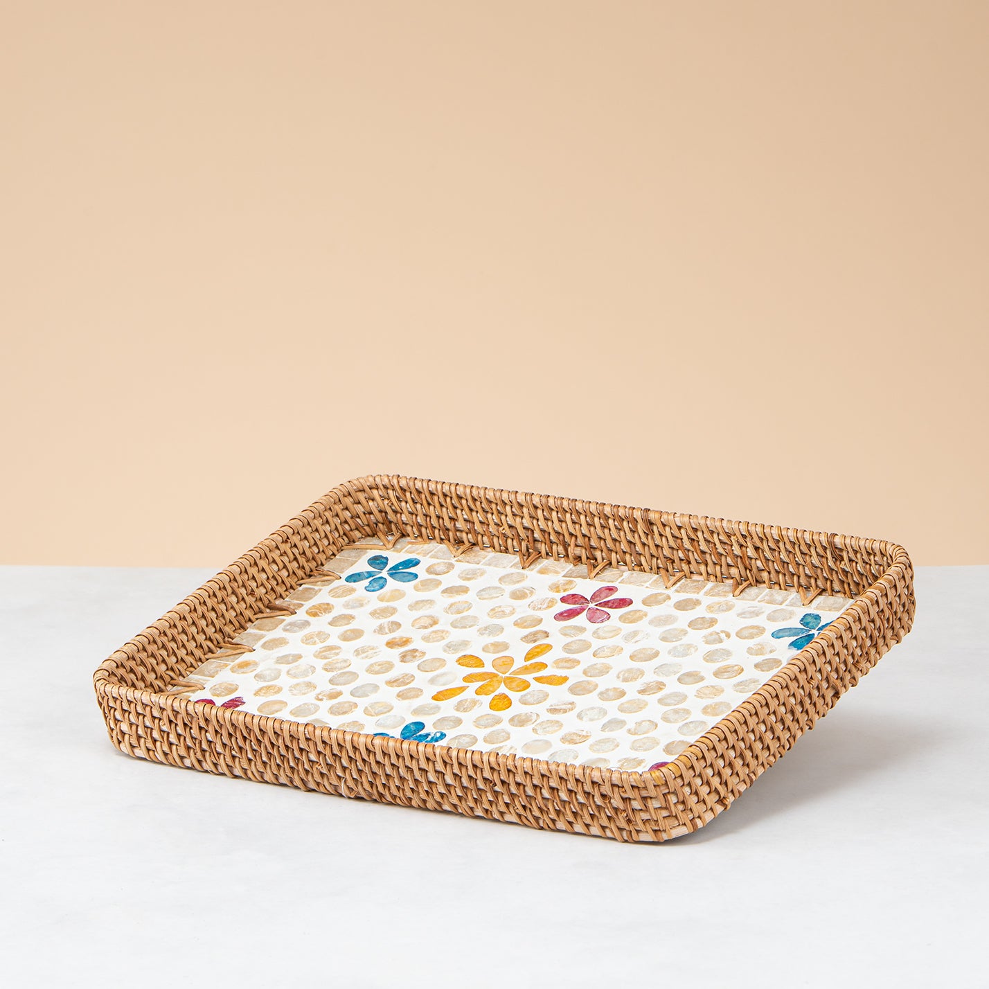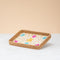 Crafted rattan rectangular tray-floral design