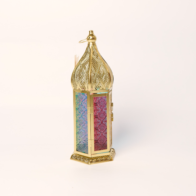 Bring the spirit of Ramadan into your home with this beautifully crafted traditional lantern. Designed with classic Ramadan-inspired cut-out patterns, this lantern creates a warm and inviting glow, perfect for iftar gatherings, suhoor décor, or festive home styling.