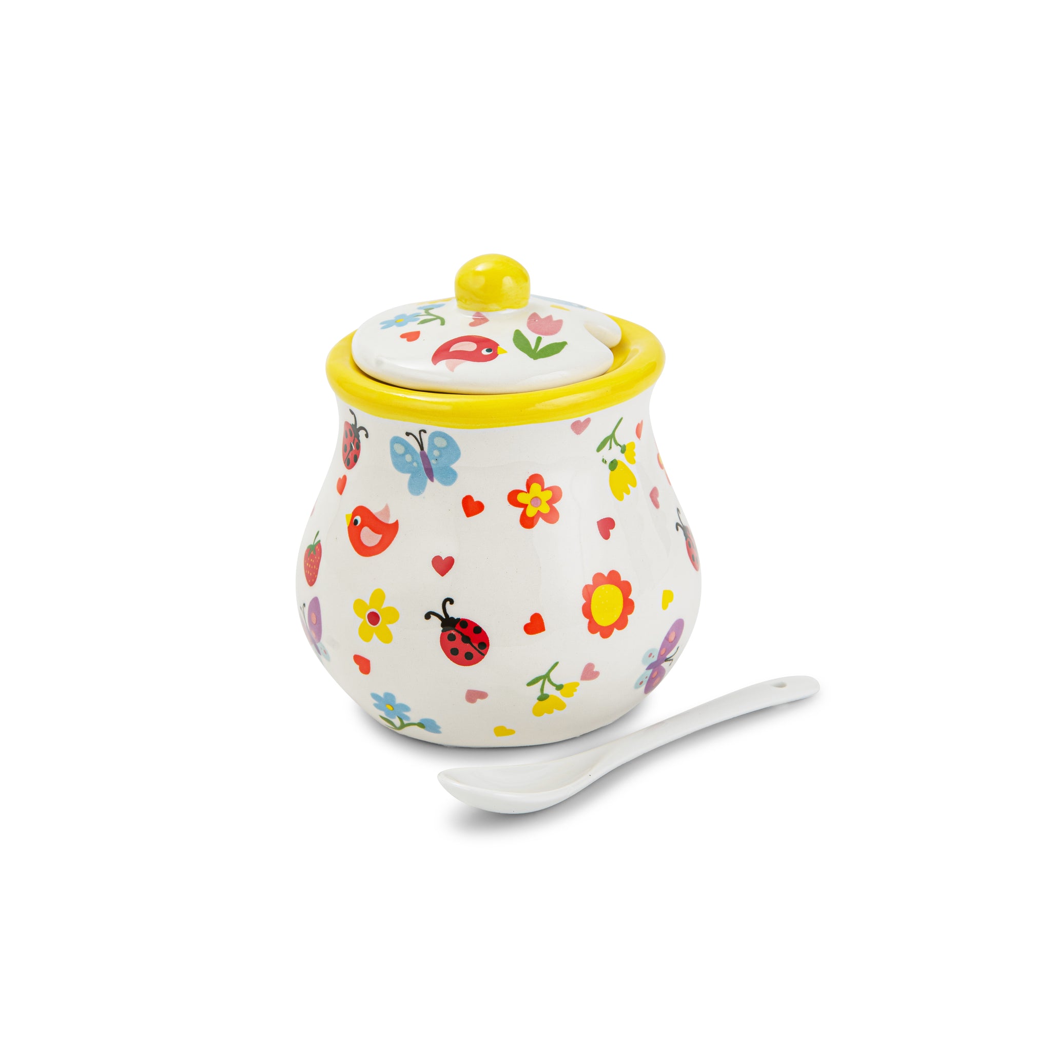 A charming sugar pot featuring delicate bee-inspired designs, perfect for storing and serving sugar with style. Its elegant and whimsical look makes it a lovely addition to your tea or coffee setup, adding a touch of nature-inspired charm to your table.