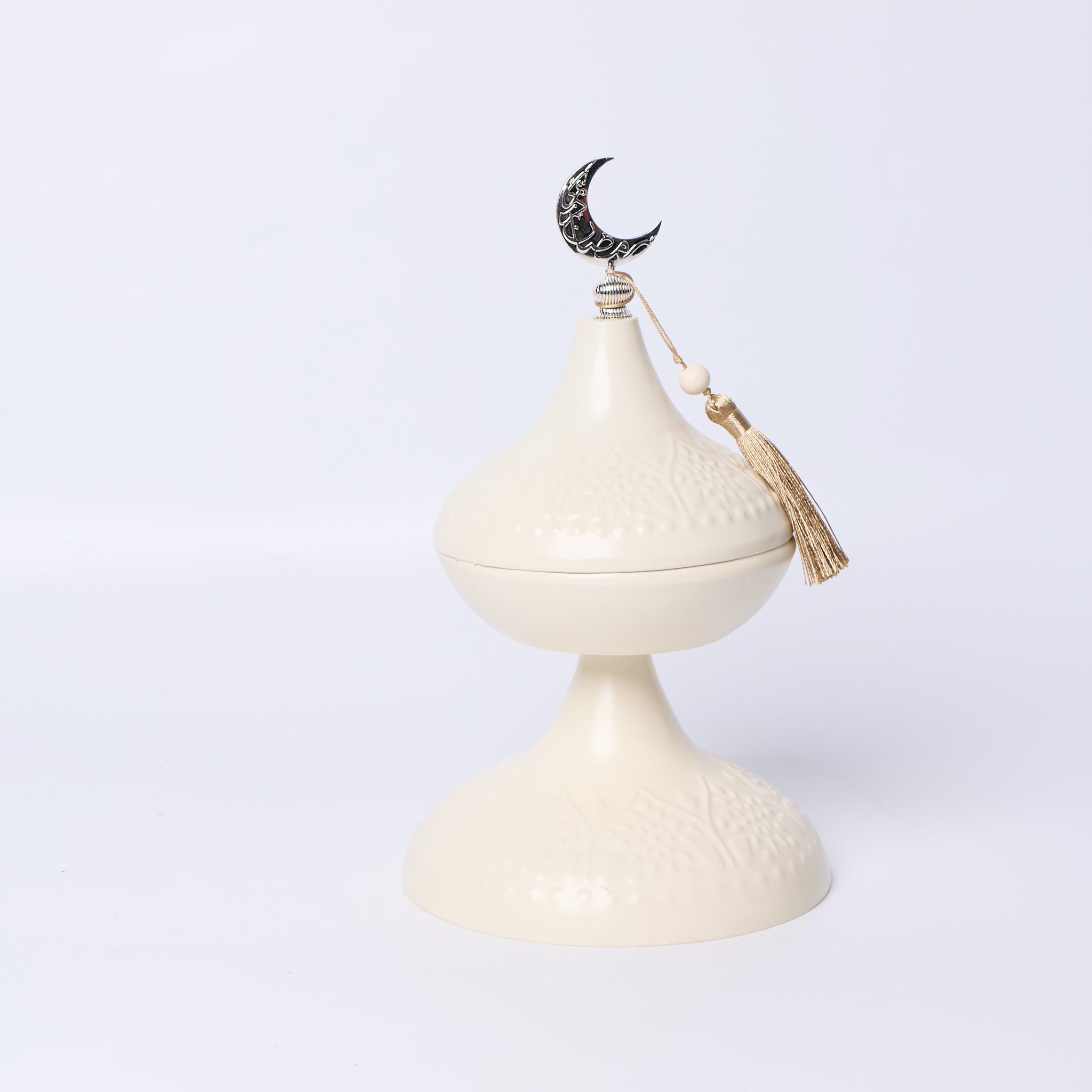 Keep your treats fresh and your table stylish with this Ramadan bowl with cover. Perfect for serving dates, sweets, or nuts, its elegant design adds a festive touch to your Ramadan décor while ensuring your food stays protected. A functional and decorative piece for joyful celebrations.