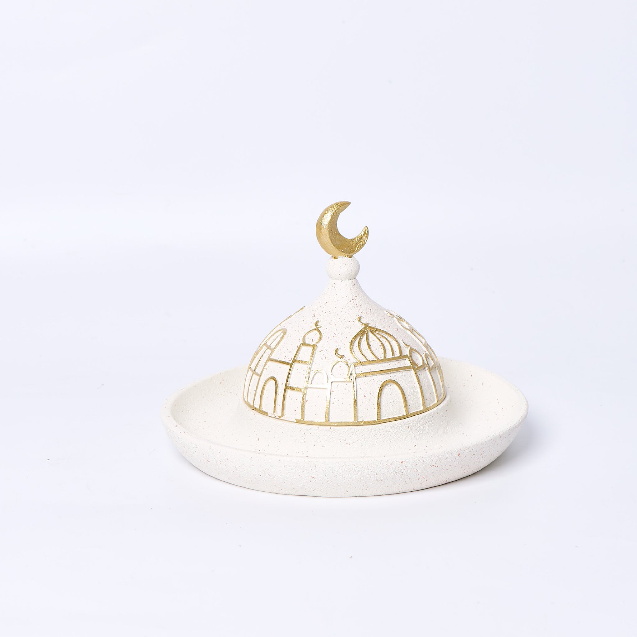 Serve your Ramadan treats beautifully with this stylish plate with cover. Designed with Ramadan-inspired details, it is ideal for presenting dates, sweets, and desserts during iftar and suhoor. The cover helps keep food fresh while adding a refined, festive touch to your table setting.